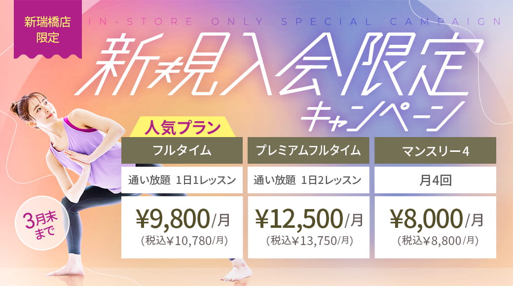 新瑞橋店限定 新規入会限定キャンペーン 3月末まで