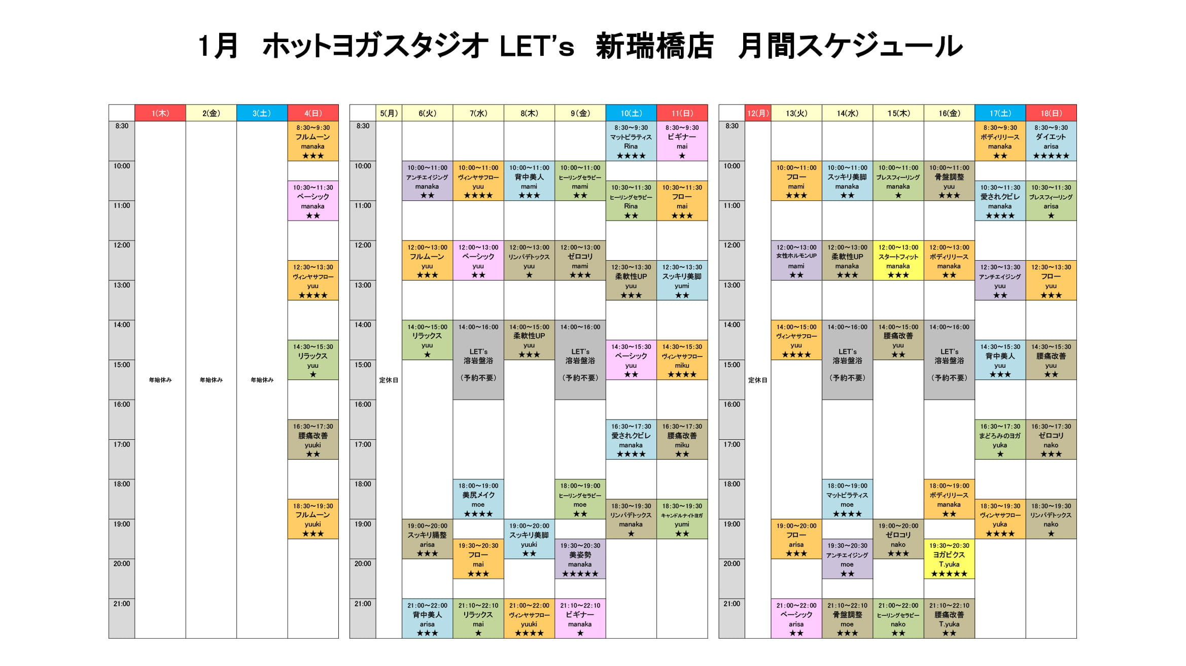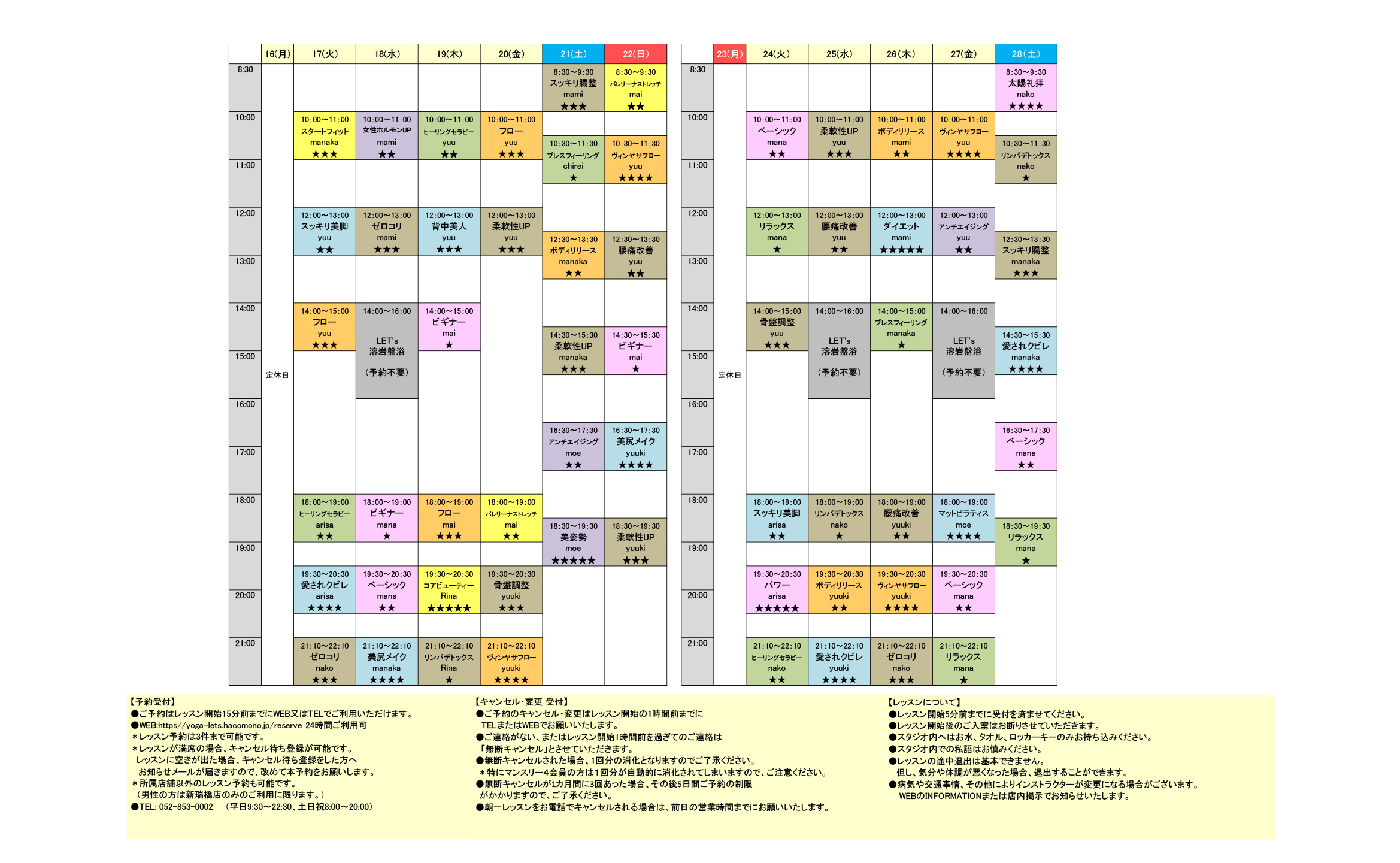 ホットヨガスタジオLET's(レッツ)スケジュールについて