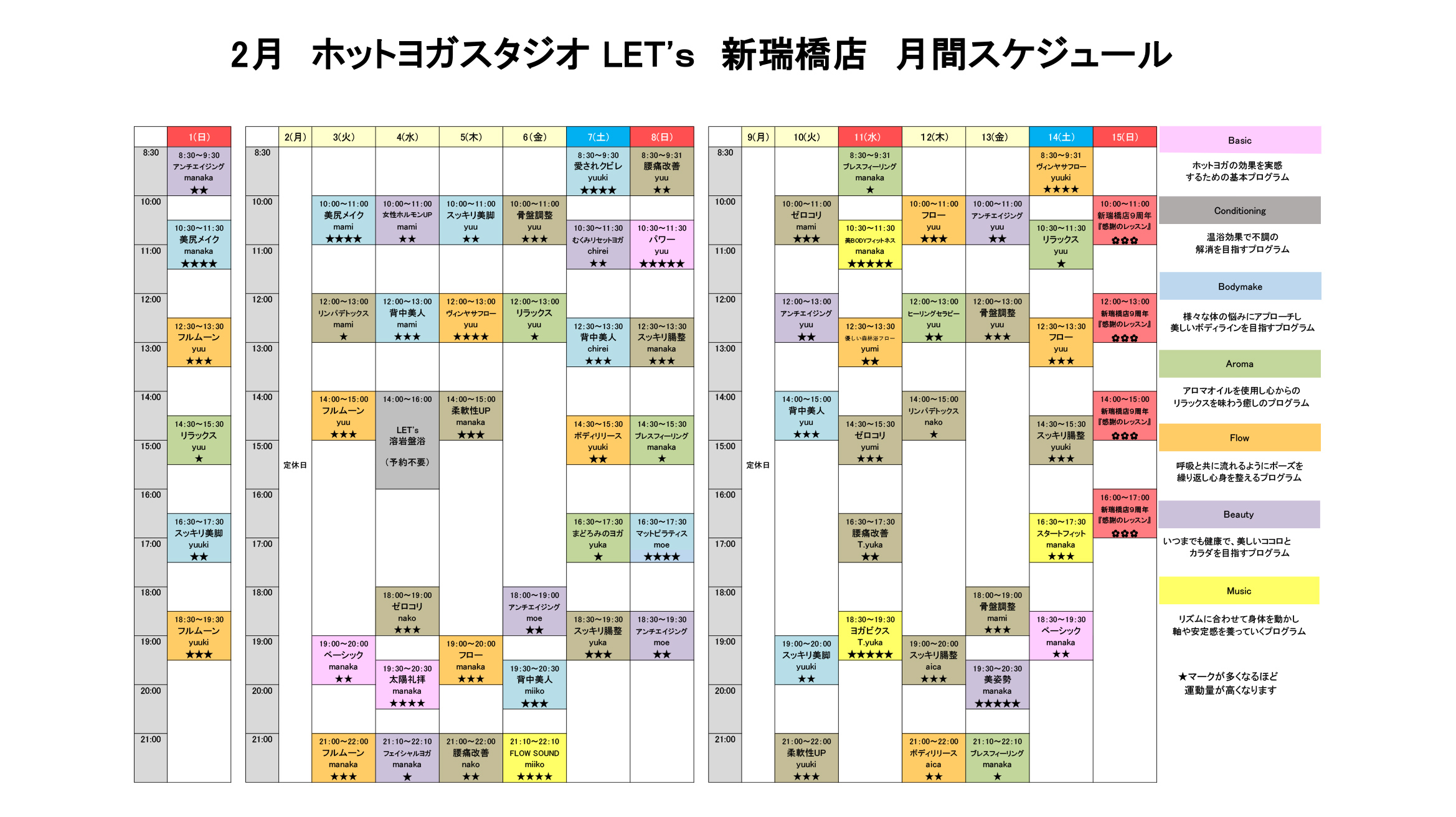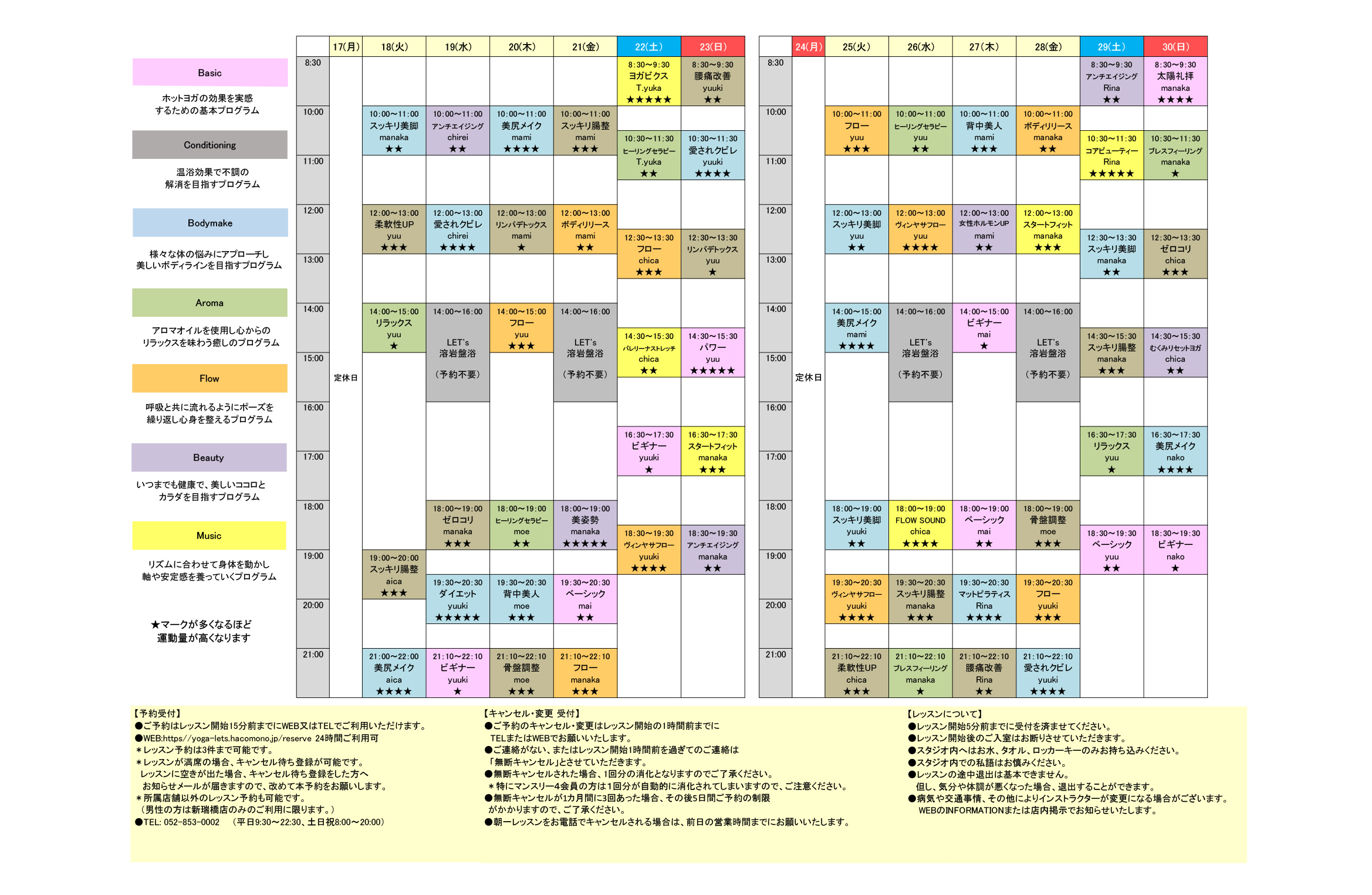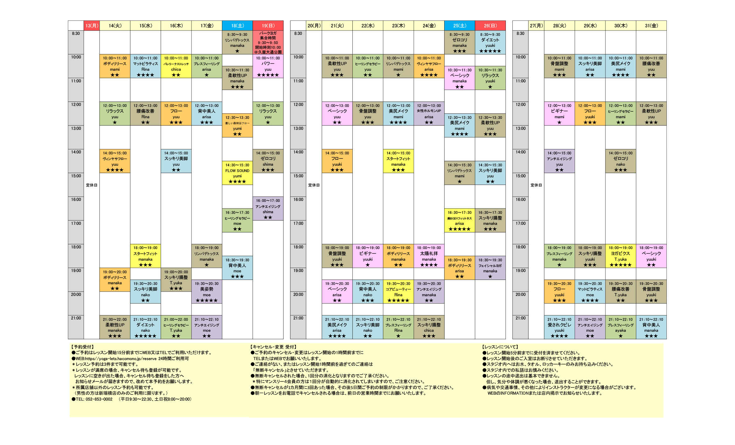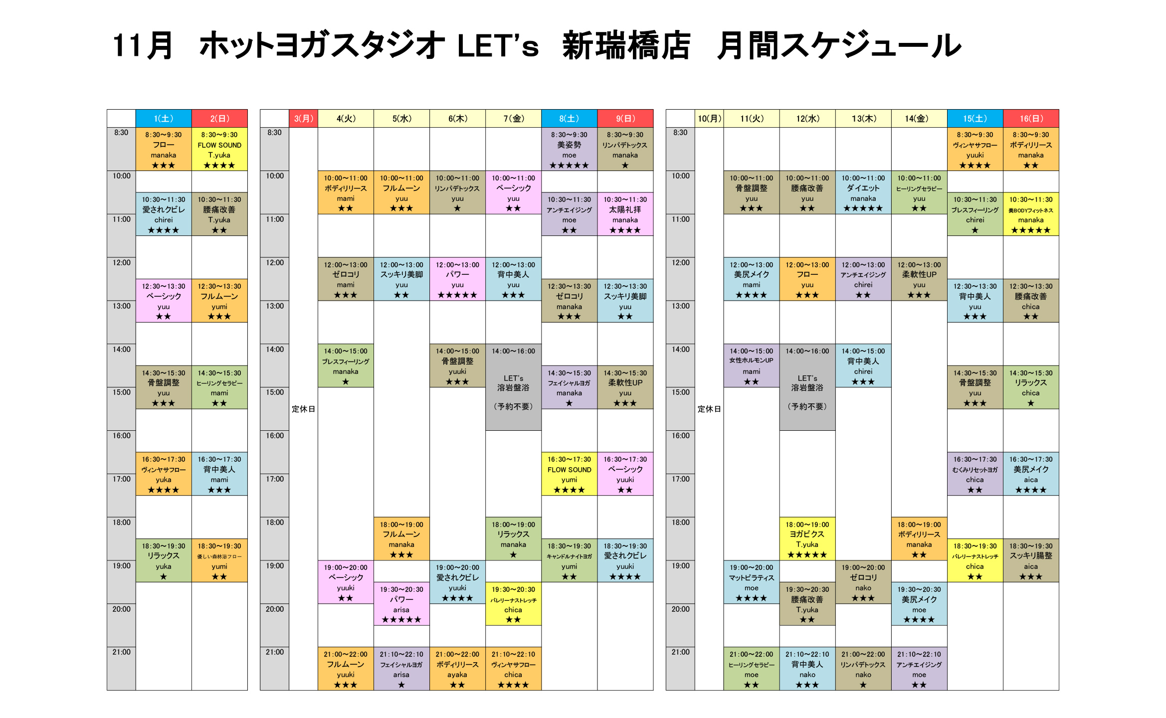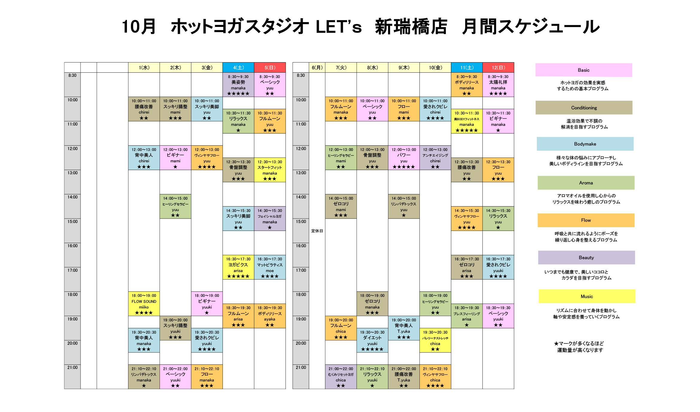 ホットヨガスタジオLET's(レッツ)スケジュールについて